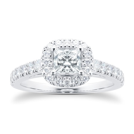 Goldsmiths 18ct White Gold 1.00cttw Princess Cut Diamond Halo Engagement Ring