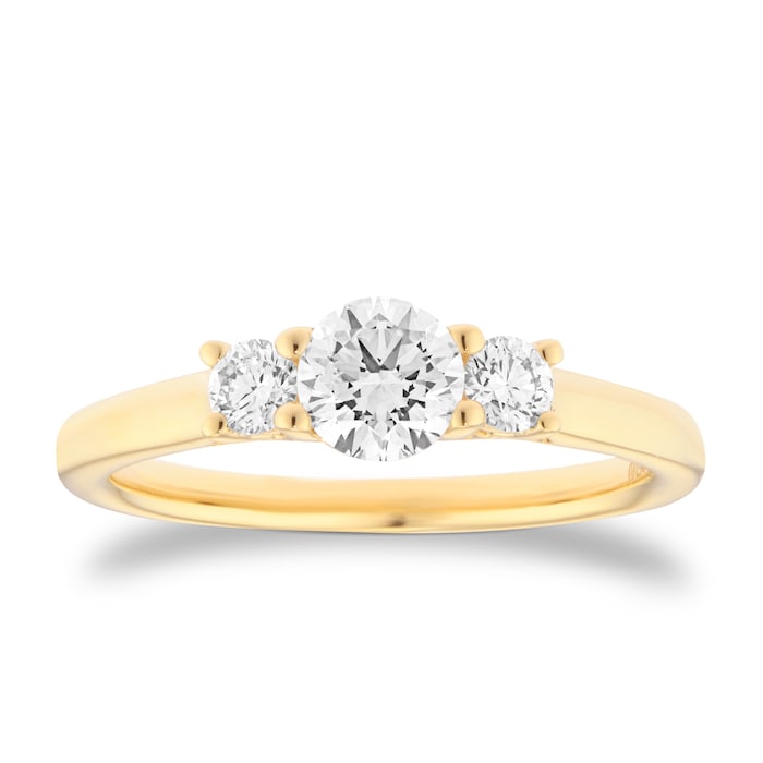 Goldsmiths 18ct Yellow Gold 0.70cttw Round Brilliant Cut Diamond 3 Stone Engagement Ring