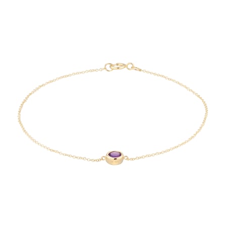 This birthstone bracelet is truly captivating, with a central, round Amethyst stone in a harmonious bezel setting.