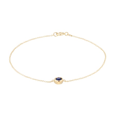 This birthstone bracelet truly captivating, with a central, round sapphire stone in a harmonious bezel setting