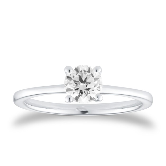 This platinum solitaire engagement ring showcases a 0.70ct round brilliant cut diamond, set to reveal its natural radiance. The simplicity of the setting allows the stone to take centre stage, symbolising clarity and devotion.