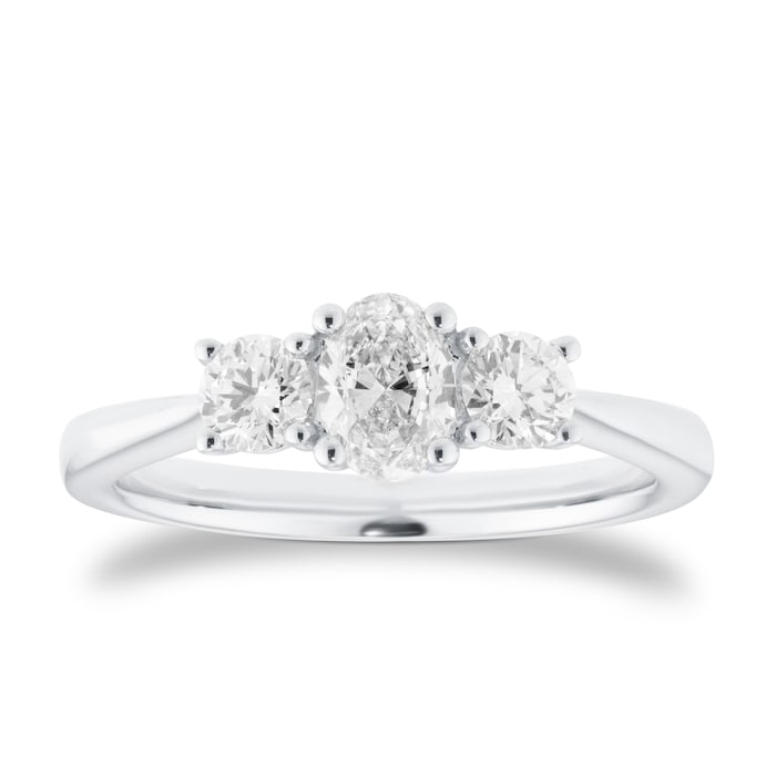 Goldsmiths Platinum 0.76cttw Oval and Brilliant Cut Diamond 3 Stone Engagement Ring