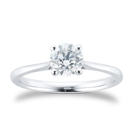 This platinum engagement ring showcases a 0.80ct brilliant-cut diamond in a classic solitaire setting. Its polished finish and graceful proportions allow light to dance across every facet, creating a look of refined sophistication.