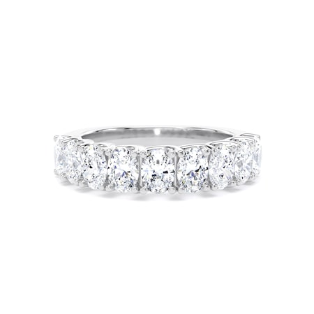 This platinum half eternity ring features nine oval cut lab-grown diamonds with a total weight of 2.00ct. The elongated shape of each stone adds graceful dimension to the band, enhancing its visual flow and brilliance.