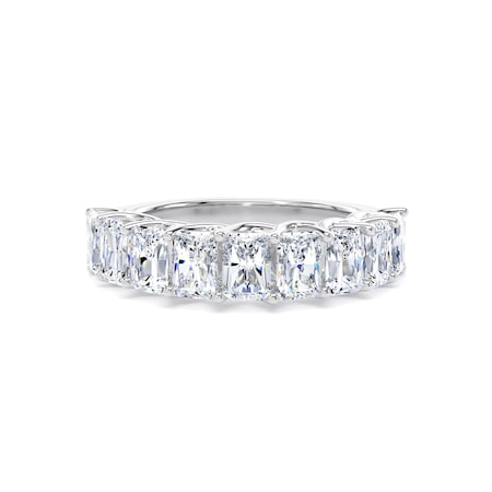 This platinum half eternity ring features nine radiant cut lab-grown diamonds with a total weight of 2.00ct. The angular brilliance of the radiant cut adds a contemporary edge to the classic eternity silhouette.