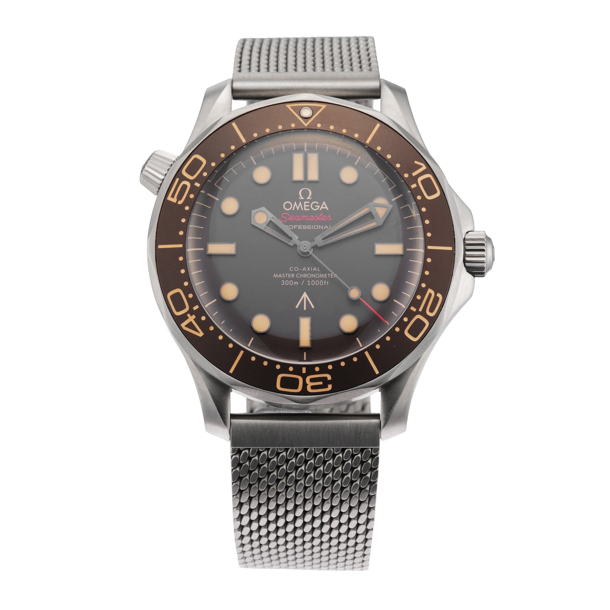 Committed to creating world class timepieces with astonishing functionality, OMEGA watches continue to be at the forefront of innovation. Designed with sportspeople in mind, the prestigious brand has been the timekeeper of choice for many major sporting events. This Pre-Owned Omega Seamaster Diver 300M 42mm Titanium 007 Edition features a 42mm titanium case, showcasing a brown dial and sapphire crystal glass. Powered by an automatic movement, this impressive watch also showcases a titanium bracelet finished with a deployment clasp for added security. This watch is also water resistant to 300 metres.