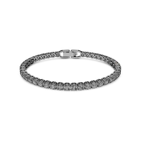 - MeasurementsRhodium Plated Tennis Deluxe Grey Crystal Bracelet