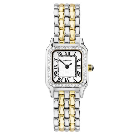 The Monica stone-set bezel watch strikes the perfect balance between everyday wear and timeless elegance. Its distinctive octagonal case frames a white guilloché dial with bold black Roman numerals, while a shimmering bezel set with 48 sparkling stones adds a touch of luxury. Complete with a classic metal bracelet and available in four stunning colourways, this versatile watch is designed to suit every wrist — and every occasion.